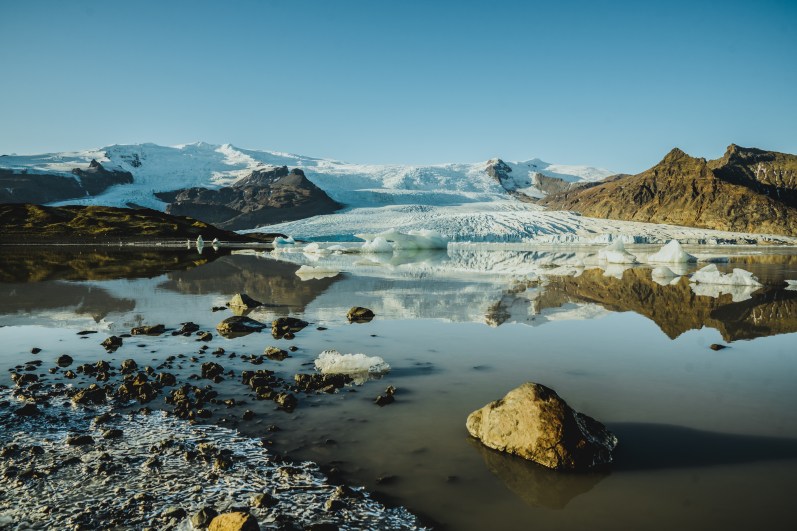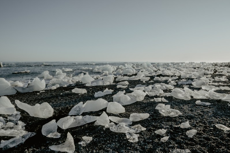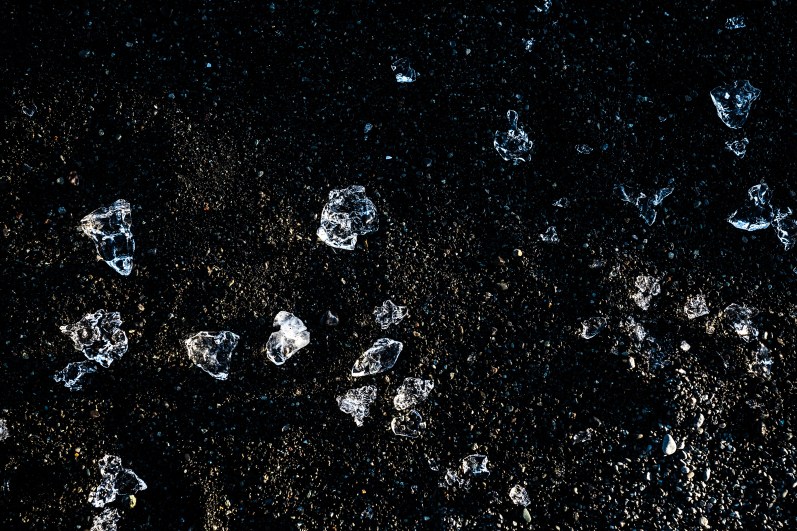 Spiagge nere, invase da turisti e da piccoli iceberg che sciogliendosi si frantumano in piccole pietre di ghiaccio luminose che ricordano i diamanti.